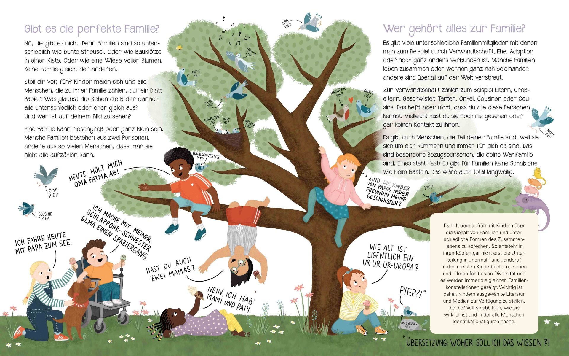 Dieses Aufklärungsbuch mit Vorlesetexten und Info-Kästen für Eltern und Bezugspersonen holt Familien in ihrer Lebensrealität ab und bricht mit Rollenbildern, Erwartungen und Standards. Es zeigt viele neue Konstellationen aus dem echten Leben auf, welche die jungen Leser*innen und Vorlesenden vielleicht noch nicht kennen und die vor allem dazu anregen, jede Familie neu kennenzulernen.