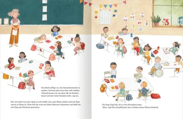 Ein Bilderbuch über den Schulanfang, das Kennenlernen von neuen Freunden und Freundinnen, die alle ganz unterschiedlich sind, über Mobbing und Traurigkeit, Toleranz und Zusammenhalt - zum Vorlesen für Kinder ab 5 Jahren und für die ganze Familie.