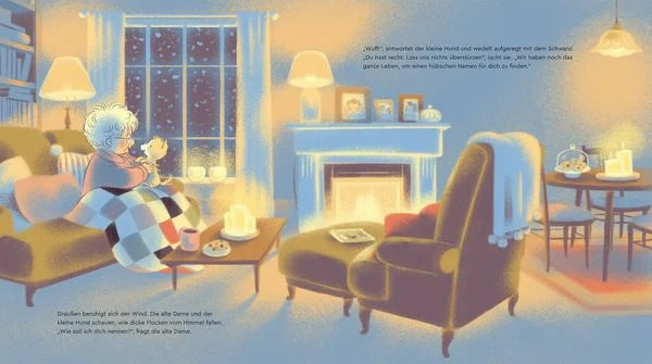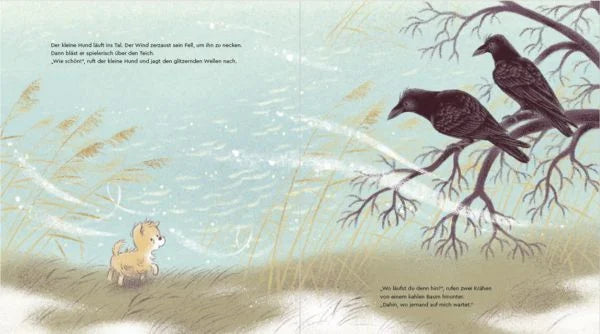Der Winter hält Einzug im Dorf, und ein kleiner Hund sucht nach einem warmen Plätzchen. Doch keiner will ihn aufnehmen. Die Türen bleiben für ihn verschlossen. Der Wind begleitet den kleinen Hund durch den verschneiten Winterwald auf seiner Suche nach einem Zuhause - und flüstert ihm immer wieder Mut zu. Als der kleine Hund schließlich in der großen Stadt landet, wird er von den vielen hektischen Menschen gar nicht gesehen. Verängstigt und entmutigt legt er sich auf die Fußmatte eines kleinen erleuchteten Häuschens - und gibt auf. Da rüttelt der Wind an den Fensterläden, stößt die Haustüre auf - und eine alte Dame holt den erschöpften Hund zu sich ins Warme. Der Beginn einer wunderbaren Freundschaft ...