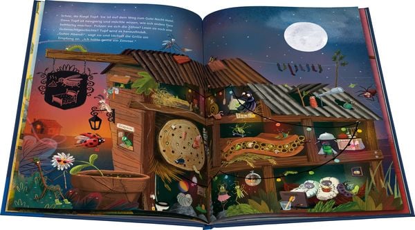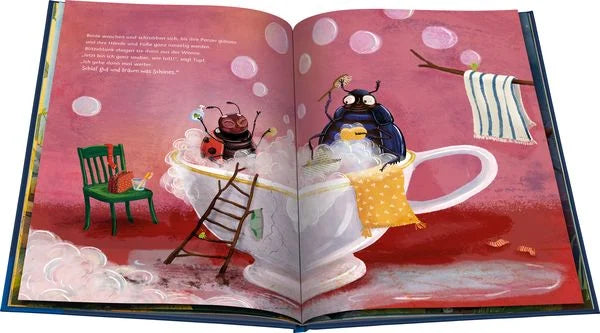 Marienkäferdame Tupf möchte gerne wissen, was andere Insekten abends machen, bevor sie ins Bett gehen. Um das herauszufinden, besucht sie verschiedene Gäste im Gute-Nacht-Hotel und begleitet sie bei ihren abendlichen Ritualen. Sie nehmen ein Bad, ziehen ihren Schlafanzug an, putzen sich die Zähne, machen Pipi und lesen eine Gutenachtgeschichte. Dann ist es endlich Zeit fürs Bett. Aber Moment mal, da fehlt doch noch das Wichtigste! Was hat Tupf nur vergessen? Ist doch klar: den Gutenachtkuss!