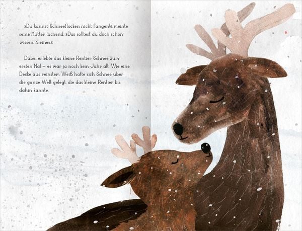 Das kleine Rentier war voraus durch den tiefen Schnee gestapft. Doch plötzlich war es ganz alleine. Wo war seine Herde? Es hatte sich verirrt!