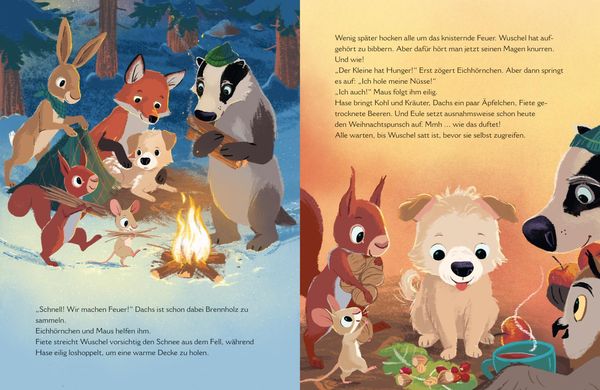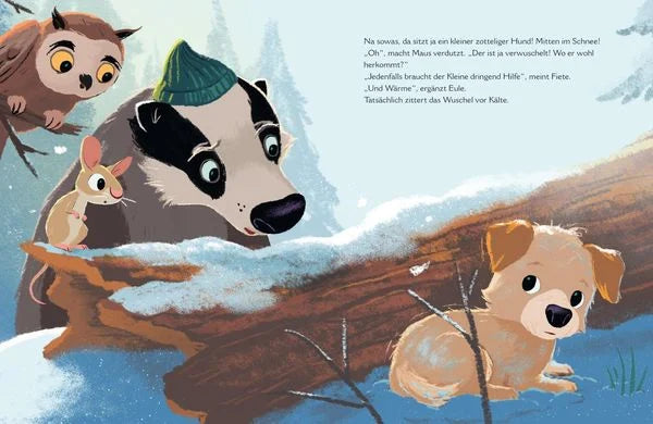 Der kleine Fuchs Fiete hält es im Wald kaum noch aus. Obwohl morgen Weihnachten ist, streiten die Tiere ununterbrochen! Moment mal - was ist das denn für ein Geräusch? Trotz lautem Piepen, Krächzen und Zanken hört Fiete ein leises Fiepen im Unterholz. Als die Tiere der Sache gemeinsam auf den Grund gehen, finden Sie im Schnee einen bibbernden wuscheligen Hund.