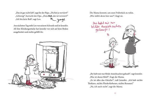 Nur die Erwachsenen kapieren es erst mal nicht und glauben immer noch, sie sollte weiterhin Leo sein, ein Bub. Dabei müssten sie sich nur ein Beispiel an der Katze nehmen. Die interessiert das alles gar nicht. Und so nehmen Jennifer und ihre Freunde die Angelegenheit eben selbst in die Hand.