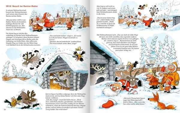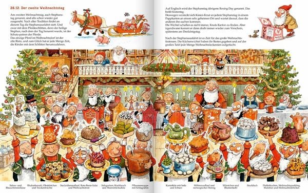 Endlich Feierabend! Am 25. Dezember kommt der Weihnachtsmann mit seinen Wichteln zurück in sein Weihnachtsdorf. Alle Geschenke sind verteilt - und nun? Endlich haben alle Zeit, sich auszuruhen und selbst ein wenig zu feiern! Die Wichtel machen ihre eigene Bescherung, es gibt ein Festessen und ein Theaterstück, man spielt Billard oder baut Schneeskulpturen und feiert natürlich Silvester. Doch schon bald geht die Arbeit wieder los, denn das nächste Weihnachtsfest muss vorbereitet werden.- Die Fortsetzung des erfolgreichen Bilderbuch-Klassikers "Wo der Weihnachtsmann wohnt".- Kinder ab 4 Jahren erfahren endlich, was der Weihnachtsmann, seine Frau und die Wichtel nach Heiligabend machen.- Warmherzig erzählt und voller wimmeliger, humorvoller Illustrationen.- Ein Muss für die Adventszeit.