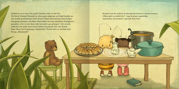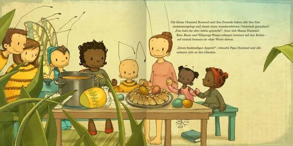 Die kleine Hummel Bommel und ihre Freunde wollen zusammen ein schönes Osterfest feiern. Sie freuen sich auf ein hummeliges Festessen mit Marie Marienkäfers köstlichem Honigbraten und natürlich ganz besonders auf die große Ostereiersuche. Als Pastor Fliege endlich den Startschuss abfeuert, gibt es so erst einmal ein wildes Durcheinander. Jeder will die schönsten Eier finden. Aber ist es wirklich das, was an Ostern zählt?