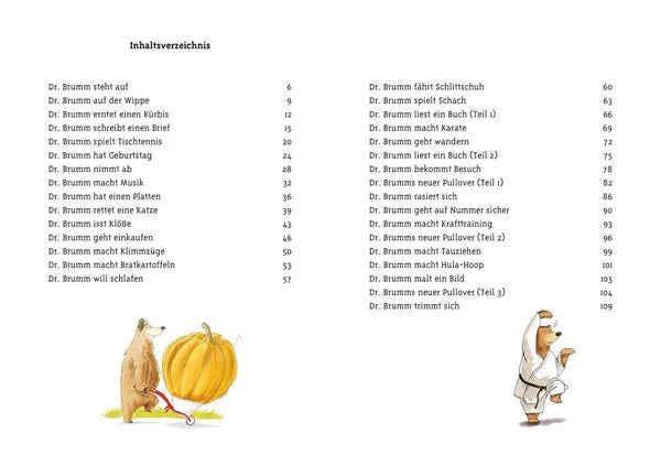Dr. Brumm wird es niemals langweilig, denn irgendwas läuft immer schief! Egal, ob sein Riesenkürbis nicht durch die Tür passen will, der Briefumschlag an der Zunge kleben bleibt oder ein Wildschwein auf dem Trimmdichpfad für Probleme sorgt - Dr. Brumm findet gemeinsam mit seinen Freunden Pottwal und Dachs immer eine Lösung.