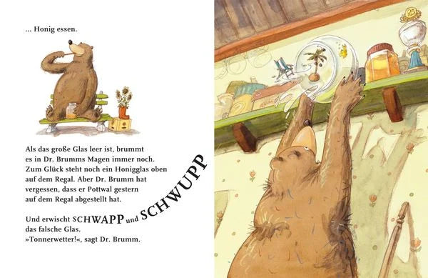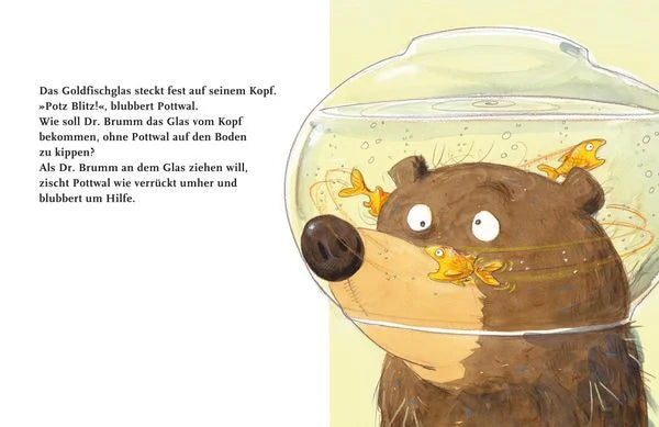 Heute geht aber auch alles schief! Erst steckt Dr. Brumm im Goldfischglas von Pottwal fest, dann tritt er versehentlich in die Gießkanne und beim Versuch, sich aus ihr zu befreien, landet er im Milchtopf ... Wie soll das bloß enden?
