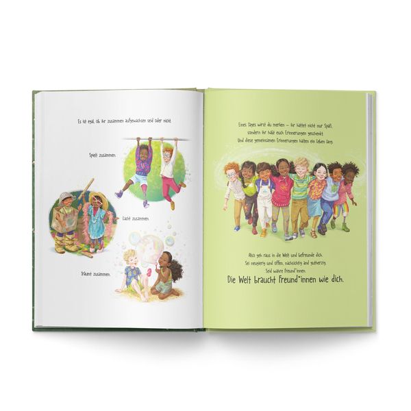 Mit seiner motivierenden Botschaft fördert das Bilderbuch „Ein*e Freund*in wie du“ Mut, Empathie und Selbstlosigkeit. Denn die Welt braucht starke Kinder mit sozialen Kompetenzen und echten Freund*innen!