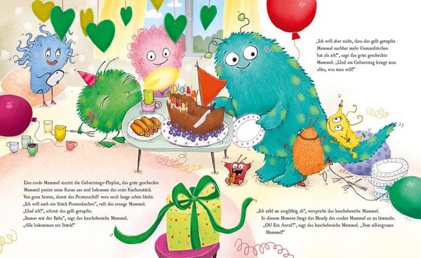 Was für eine Aufregung. Das grün gescheckte Mummel hat Geburtstag. Und da soll natürlich soll perfekt sein. Für alle. Und ganz besonders für das Geburtstagsmummel. Denn am Geburtstag bekommt man alles, was man will. Also auch einen Piratenschiffkuchen, obwohl es eigentlich ein Rennautokuchen sein sollte. Und auch eine Parkgarage, obwohl eigentlich ein Puppenhaus gewünscht war.Aber stimmt das denn?
