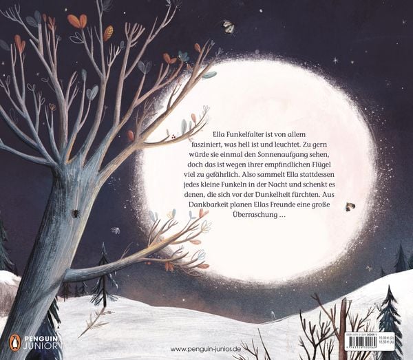 Ella Funkelfalter ist von allem fasziniert, was hell ist und leuchtet. Zu gern würde sie einmal den Sonnenaufgang erleben, doch das ist wegen ihrer empfindlichen Flügelchen viel zu gefährlich. Also sammelt Ella das Leuchten aller nächtlichen Lichtquellen und schenkt es denen, die sich vor der Dunkelheit fürchten. Aus Dankbarkeit planen Ellas Freunde eine große Überraschung ...