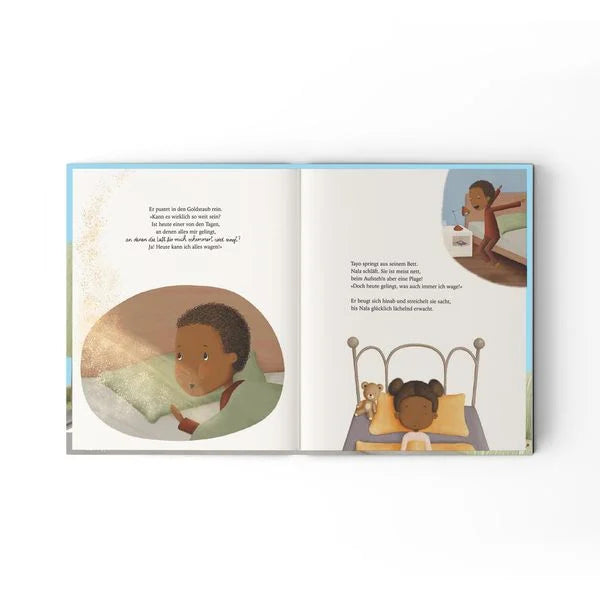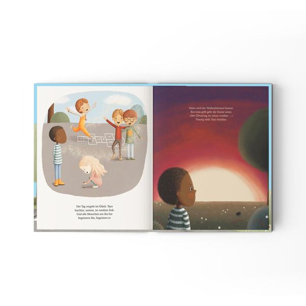 Ein glitzernder Sonnenstrahl weckt Tayo an diesem Morgen und er weiß sofort: Heute ist ein Glitzertag! Heute kann er alles schaffen! Dieses Gefühl begleitet ihn durch den Tag und nicht nur, dass ihm wirklich fast alles gelingt, er kann auch andere damit anstecken! Doch die beste Entdeckung macht Tayo, als er abends im Bett liegt und spürt, dass wir dieses Glitzerlicht in uns tragen - wir alle, jeden Tag und ein Leben lang …