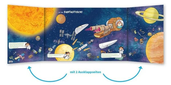 Ein lustiges Bilderbuch mit zwei tollen Ausklappseiten und ersten Wissenshäppchen um das Thema Weltall, Astronauten und Mars, für Kinder ab 4 Jahren.