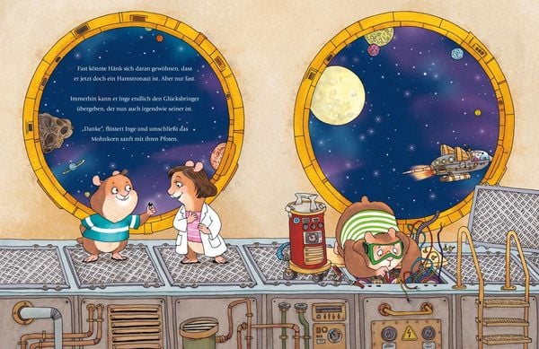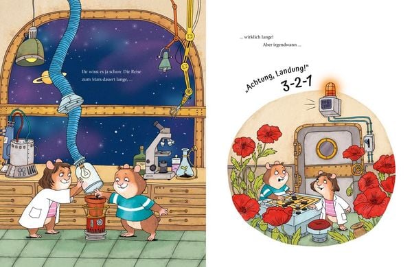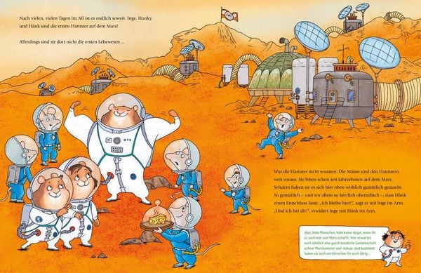 Hamster sind einfach nur flauschige Gesellen, die sich die Backen mit Korn vollstopfen? Falsch gedacht! Was niemand weiß: Hamster sind den Menschen weit voraus und in wenigen Tagen ist es so weit: Sie brechen zur ersten Marsmission auf! Für Hamster Hänk ist das allerdings nichts. Er liebt das Weltall, aber er würde sich niemals trauen, in eine Raumkapsel zu steigen. Doch dann wird er unfreiwillig Teil der Mars-Mission! Mithilfe seiner Freundin Inge gelingt es ihm tatsächlich, seine Ängste zu überwinden. (K)ein kleiner Schritt für Hänk, und ein großer Schritt für die Nager! - Lustige Geschichte: Die Hamster sind die ersten auf dem Mars!- Ein verträumter Hamster mit Platzangst wächst über sich hinaus- Zwei Ausklappseiten für galaktisch große Panoramaseiten