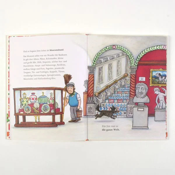 Jim ist eine Seele von Hund, der - an der Seite von Sir Henry Cole - in einem prachtvollen Museum Londons lebt. Er ist ein passionierter Leser, weshalb es ihn sehr betrübt, dass seine Sehkraft mehr und mehr nachlässt. Als er auf einem seiner Botengänge in den Buckingham-Palast ein Monokel erspäht, macht sein Herz einen Sprung und er kann nicht widerstehen.