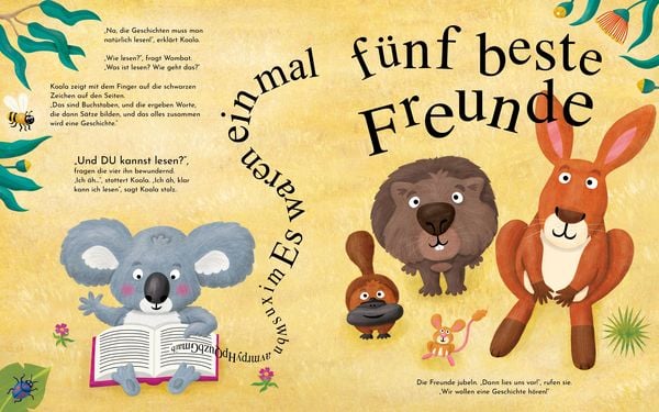 Koala hat vier beste Freunde. Sie alle können etwas besonders gut, nur er kann nichts richtig. Känguru ist superstark wie ein Boxer, Schnabeltier ist die schnellste Schwimmerin, Wombat ist ein großartiger Tänzer und Hüpfmaus baut die höchsten Sandburgen. Und Koala?