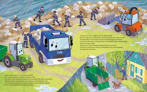 Der junge Traktor Leonard ist auf den Feldern unterwegs und zusammen mit den Feldrobotern fleißig am Säen, als es zu nieseln anfängt. Was wie ein harmloser Frühlingsregen beginnt, entwickelt sich nach und nach zu einem heftigen Unwetter. Bald sind Bäche über die Ufer getreten, einige Bäume auf die Straße gestürzt und sogar Keller stehen unter Wasser. Wie gut, dass Leonard zur Stelle ist und in der Not helfen kann!