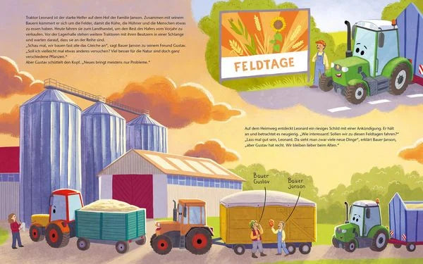 Endlich! Die Ernte ist reif und Traktor Leonard hilft Bauer Janson beim Wegbringen des Getreides. Doch beim Landhandel stellt Janson plötzlich fest, dass die anderen Bauern häufig dieselben Produkte abliefern. Traktor Leonard macht sich auf zu den "Feldtagen" - vielleicht findet er ja dort etwas Neues für den Hof, was seinen Bauern überzeugt? Ein großes Versteckspiel beginnt - mit einem heimlichen Acker, einer Menge tierischer Hilfe und tollen Freunden, die zusammenhalten. Nach dem Erfolg von "Leonard - Ein Traktor sucht das Abenteuer" folgt nun das nächste spannende Abenteuer. Eine Geschichte, die zeigt, wie aufregend und gut es sein kann, ab und zu neue Wege zu gehen.