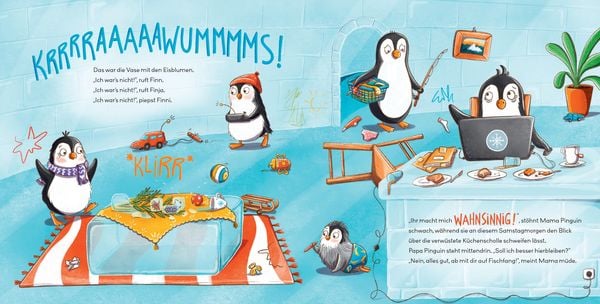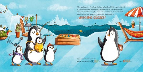 Eigentlich wollte Mama Pinguin arbeiten. Doch ihre drei quirligen Pinguin-Kinder toben ohne Pause! Also nimmt sich Mama kurzerhand eine kleine Auszeit - doch von Ruhe kann keine Rede sein. Denn die drei kleinen Wirbelwinde sprühen vor Ideen: lustige Lieder, matschige Eiskreationen und jede Menge Kuschelattacken sorgen dafür, dass Mama ganz sicher nicht langweilig wird in ihrer Eiszeit - äh Auszeit!