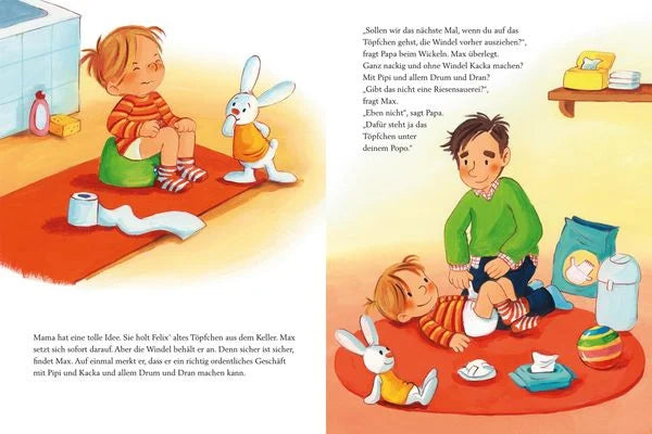 Windelfrei werden und aufs Töpfchen gehen - ein wichtiges Entwicklungsthema im Alltag mit Kindern und ein großer Schritt in Richtung Unabhängigkeit. Die einfühlsam erzählte Geschichte von Max bietet einen hohen Identifikationswert und begleitet Kinder und Eltern mit viel Humor auf dem Weg zum Trockenwerden.
