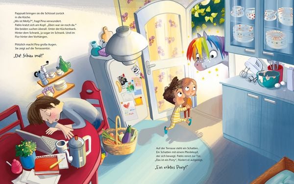 Schwuppdiwupp, stehen die beiden heimlich wieder auf und holen sich die Puddingschüssel. Und das ist Wunschpudding! Mhhm, plötzlich wird aus Schoko Vanille und vor der Terrassentür steht ein sprechendes Pony. Es lädt die Geschwister ein auf eine wundersame Reise durch die Nacht ...