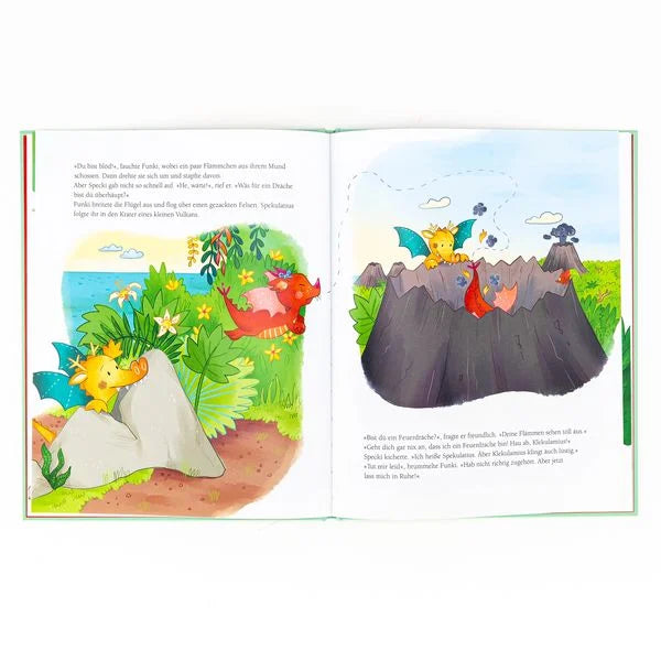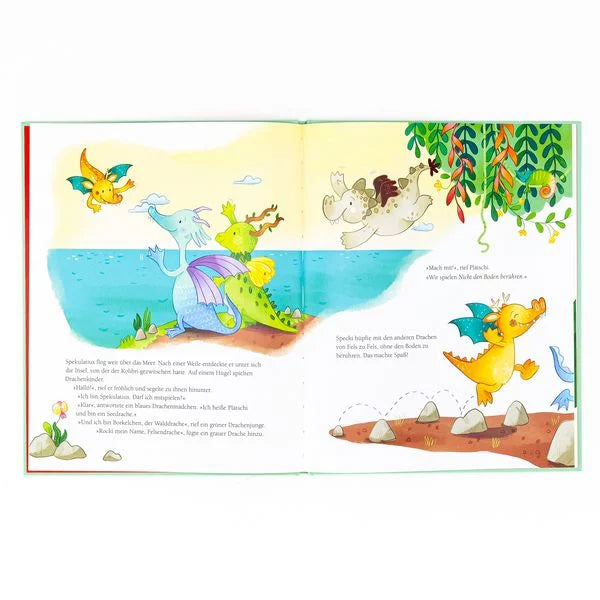 Spekulatius hätte gerne einen Freund. Jemanden, mit dem er alles zusammen machen kann. Da hört er von der Insel Dragonella, wo es viele Drachenkinder geben soll. Nichts wie hin! Ein Wasser-, ein Wald- und ein Felsendrachenkind lassen Specki gerne mitspielen. Aber was ist nur mit dem kleinen Drachenmädchen Funki los? Sie ist so wütend, dass es aus ihren Ohren raucht, und will auf keinen Fall mitmachen. Während die anderen nur mit den Schultern zucken, gibt Spekulatius nicht so schnell auf. Vielleicht fühlt sich Funki nur ein bisschen allein? So wie es Specki vorher auch war.