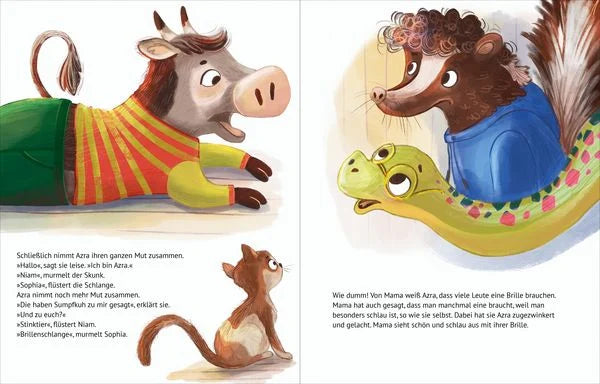 Azra spielt am liebsten im Sandkasten - bis Benedikt sie ärgert und eine SUMPFKUH nennt. Da passiert etwas Seltsames: Azra verwandelt sich tatsächlich in eine Kuh - wie peinlich! Niam und Sophia sehen auch anders aus: Sie haben sich nach Beschimpfungen ebenfalls in Tiere verwandelt. Doch die drei Kinder wissen sich zu helfen und wenden die Worte in etwas Positives um: So verwandeln sie sich gegenseitig in eine kluge Zauberin, einen wilden Drachen und einen gefährlichen Tiger. Als die drei sich mutig den Sandkasten zurückerobern, zeigt sich, dass auch Benedikt nicht immer der ist, der er zu sein scheint ...