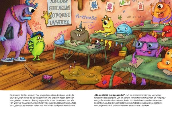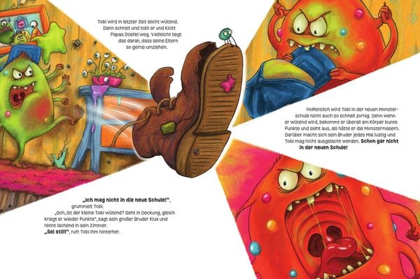 Das kleine Monster Tobi wird immer sehr schnell wütend und blöderweise wird er dann immer knallrot und bekommt bunte Monstermasern. Sein großer Bruder zieht ihn damit immer auf. Und Tobi mag es gar nicht, ausgelacht zu werden. Und jetzt muss er auch noch in die neue Monsterschule. Was, wenn er dort auch wütend wird und sich alle über ihn lustig machen...?