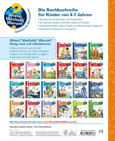 Dieses Buch nimmt Kinder an die Hand beim Erkunden von Situationen und Gefühlen rund ums Selbstbewusstsein. Klappen machen das Thema hautnah erlebbar: Ein Kind traut sich das erste Mal alleine einzukaufen, ein anderes muntert eine traurige Freundin auf. Wir erklären, wozu Angst da ist und zeigen, wie man Mut und Stärke trainieren kann. Ein Buch für ALLE Kinder - die forschen und die zurückhaltenden!