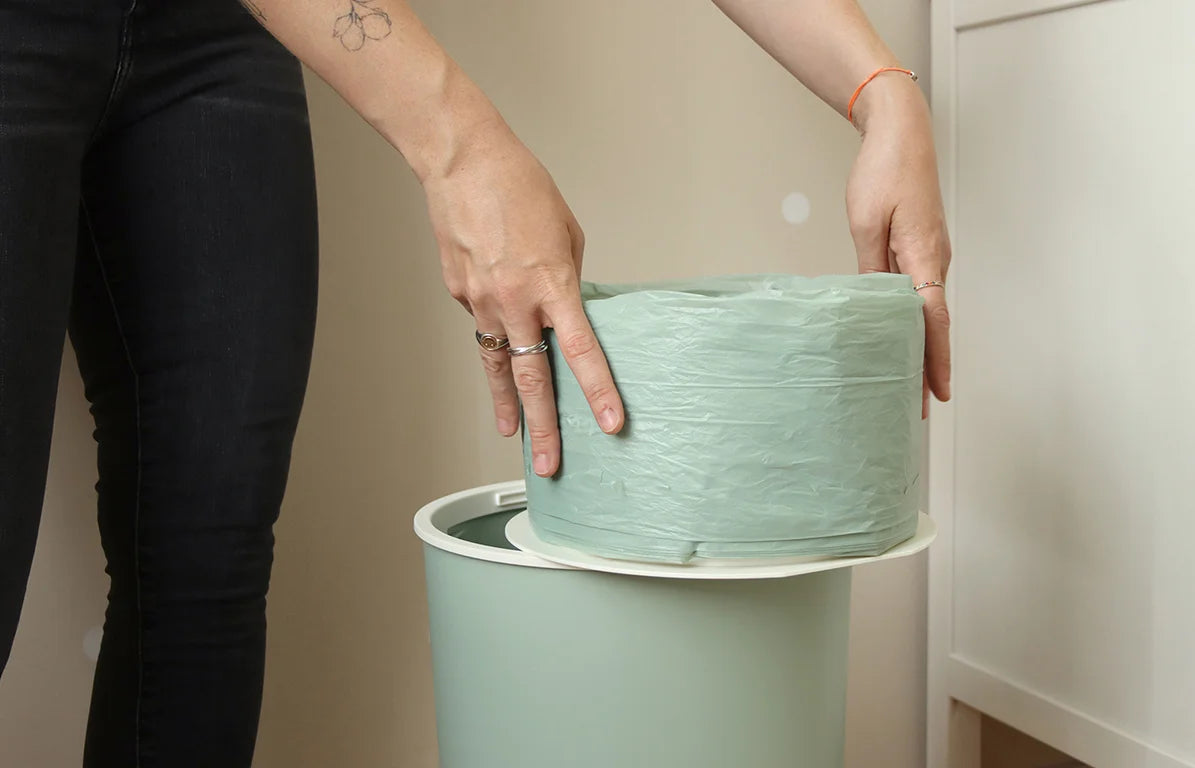 Die Schlauchfolien sind biologisch abbaubar, reißfest und geruchssicher. Dadurch, dass sie wirklich auf den Millimeter perfekt auf den Mülleimer zugeschnitten sind und passgenau mit einem Cutter abgetrennt werden können, sind die Schlauchfolien die umweltfreundlichste Option, den Windelmülleimer zu nutzen und Müll einzusparen. Die Tüten für den Windelmülleimer sind mit einem dezenten, frischen Duft versehen.