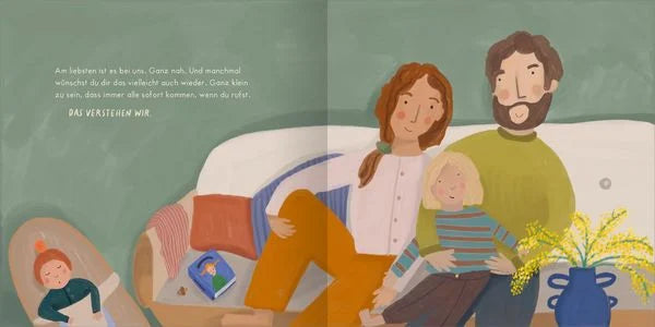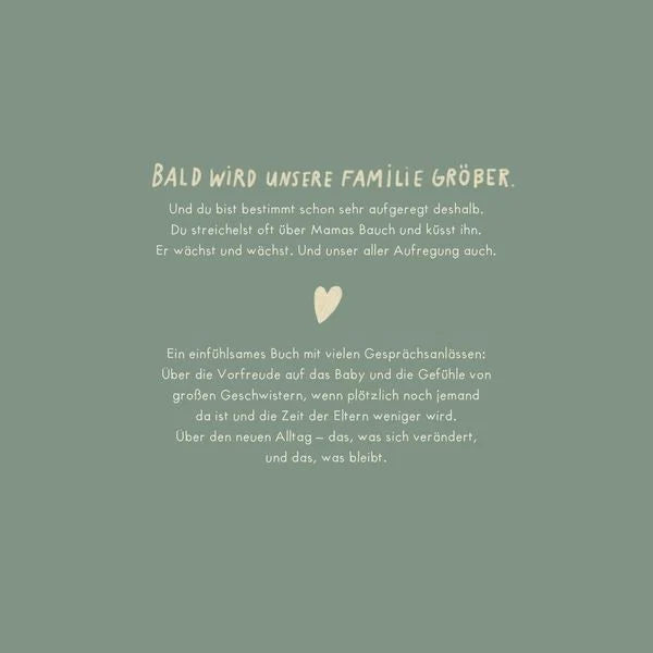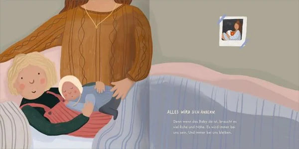 Ein einfühlsames Buch, das viele Gesprächsanlässe bietet - über die Vorfreude auf das Baby und die Gefühle von großen Geschwistern, wenn plötzlich noch jemand da ist und die Zeit von den Eltern weniger wird. Über den neuen Alltag, das was sich verändert und das was bleibt.