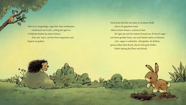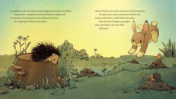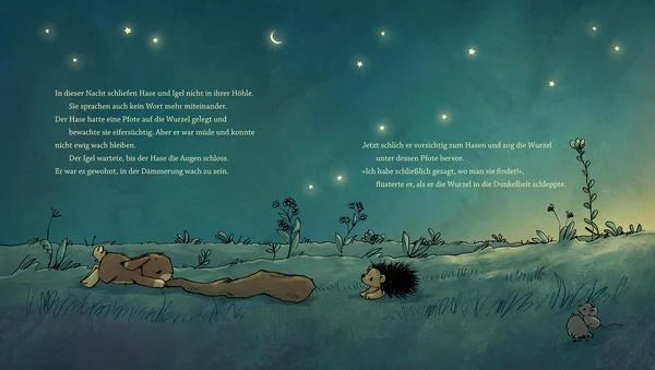 Es ist ein wunderschöner Sommertag und die Margeriten wiegen sich im Wind, als der Hase eine interessante Wurzel findet. Mit viel Mühe buddelt er sie aus. Doch als er stolz seinen Schatz nach Hause tragen will, behauptet der Igel, die Wurzel gehöre ihm. Und ehe die beiden Freunde sich versehen, sind sie zum ersten Mal in einen gemeinen Streit verwickelt, in dem die Gefühle so richtig hochkochen. In dieser Nacht schlafen Hase und Igel gar nicht gut. Was für ein Glück aber, dass sie es am nächsten Tag schaffen, sich beieinander zu entschuldigen. Denn beste Freunde machen doch am liebsten alles gemeinsam!