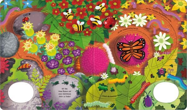 . Mit Aufzieh-Käferchen, 4 Fahrspuren, Stanzungen und Suchspiel auf jeder Doppelseite